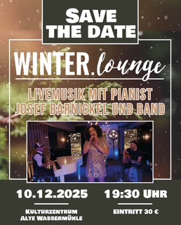 Winter-Lounge in der Wassermühle mit Josef Barnickel am 10.12.2025 um 19.30 Uhr Posted on 9. Oktober 2025 by Sabine Winnat „Winter-Lounge“ lesen Sie mehr